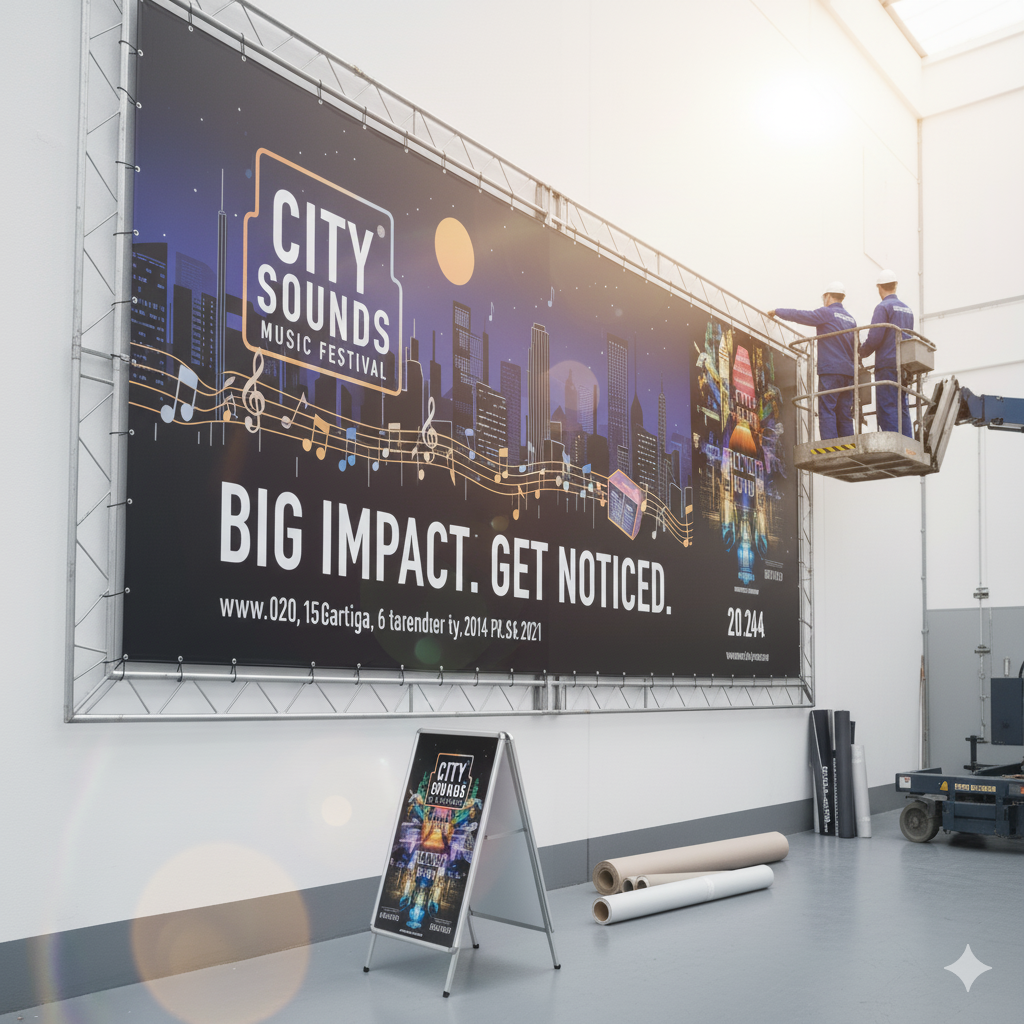 High-impact banners, posters, and advertisements for outdoor visibility.